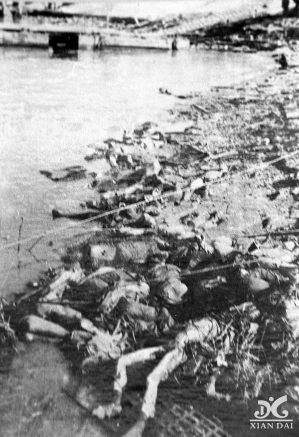 日军将被杀害的南京市民投入长江。图片来源:新华社