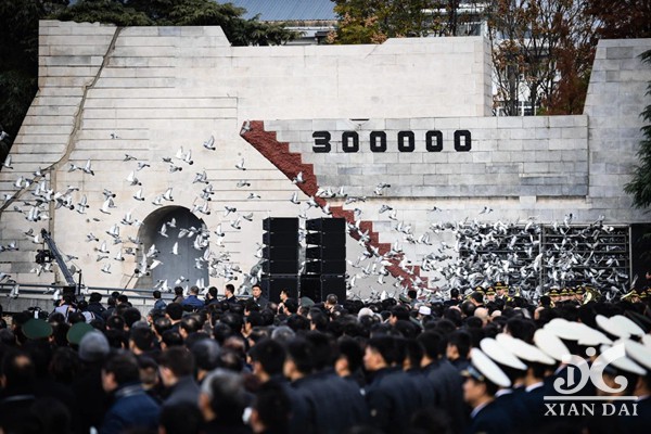 南京大屠杀死难者国家公祭仪式现场放飞和平鸽。新华社记者 季春鹏 摄
