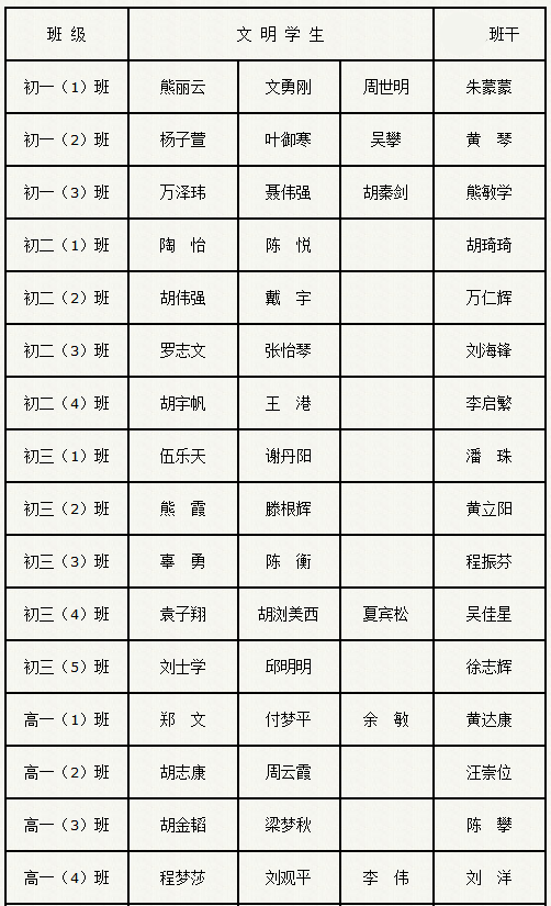 2010年——2011学年上学期文明学生、班干名单