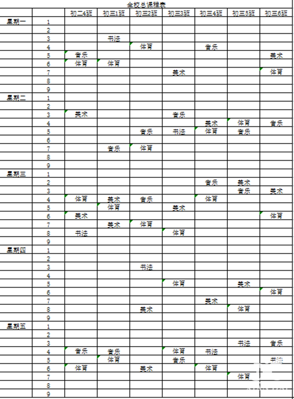 为进一步贯彻落实中办、国办《关于全面加强和改进 新时代学校体育工作的意见》和《关于全面加强和改进新 时代学校美育工作的意见》等文件精神,严格落实学校体 育美育课程开设刚性要求,省教育厅下发了《江西省普通 高中新课程新教材实施方案》和南昌市教育局印发了《关于调整<南昌市义务教育课程设置方案(2018 年修订)>的 通知》,对中小学体育美育课程设置进行了部分调整,增加了美育课时,为落实好上述文件要求,结合我校教育教学实际,特在学校微信公众号平台“晒课表”如下: