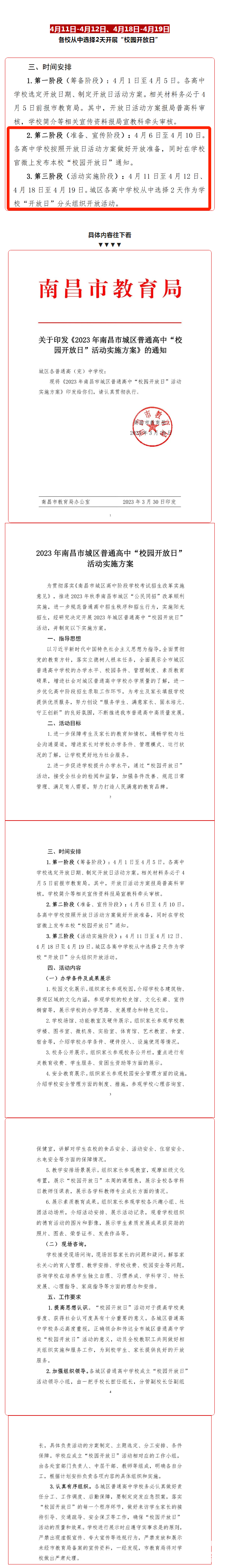 最新发布!2023南昌高中“校园开放日”时间公布!