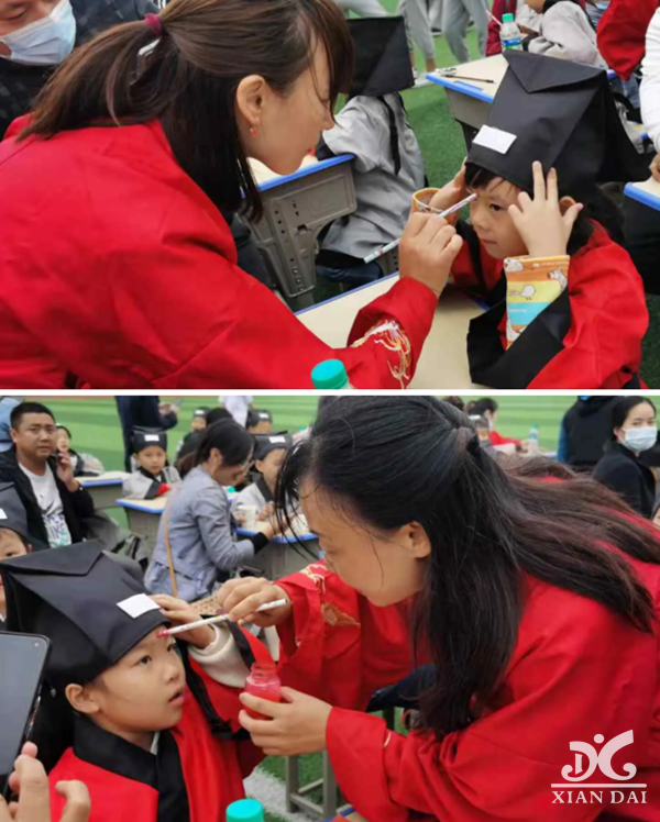 因“痣”通“智”,有着开启智慧的寓意。在古代,学童入学前会有启蒙师长点上红痣,称为“启智”。老师手持毛笔,依次在学生眉心点上“朱砂痣”。寄托了教师对学生们从此眼明心亮,好读书、爱学习;读好书、正品行;读书好、有成就的美好愿望。