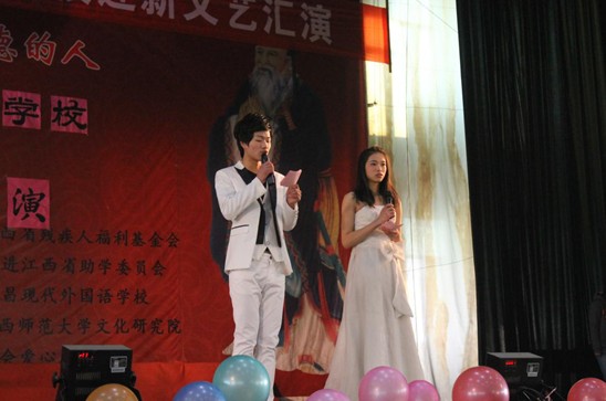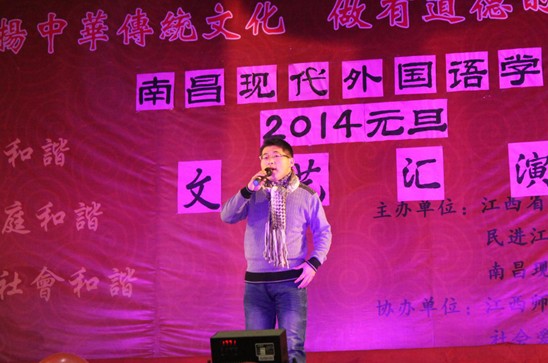 高二年级(4)班同学的独唱《红色高跟鞋》,是一脍炙人口的流行歌曲,演唱者以其甜美的嗓音、艳丽的服饰、活泼的表演、青春的激情,赢得在场师生阵阵掌声。小品《新闻娱乐播》由学校学生会成员出演,节目巧妙运用新闻播报的表演形式,寄情于娱,展现了青年学生的激情与团队合作精神,让在座的师生们赞叹不已。青年教师吴涛献上个人独唱《同桌的你》,其以精湛的唱功打动了在场的所有师生。