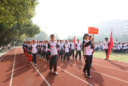 金秋十月,丹桂飘香;红旗飘飘,放飞梦想。为充分展示我校莘莘学子朝气蓬勃、开拓创新、奋发向上的精神风貌,10月22日上午,我校隆重举行2015年秋季田径运动会,这也是学校迎来的第十七个运动会。上午8:00整,沐浴着灿烂的阳光,我校2015年秋季田径运动会开幕式正式开始。手捧鲜花展朝气,红旗挥舞显英姿。伴随着《运动员进行曲》激昂的旋律,国旗队、校旗队、鲜花队和红旗队以及小学、初中、高中各班级方队,喊着响亮的口号,迈着整齐的步伐走向主席台。