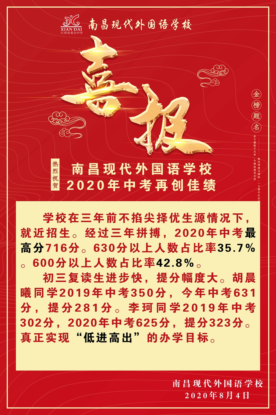 阅读上一篇:2020年高考喜报