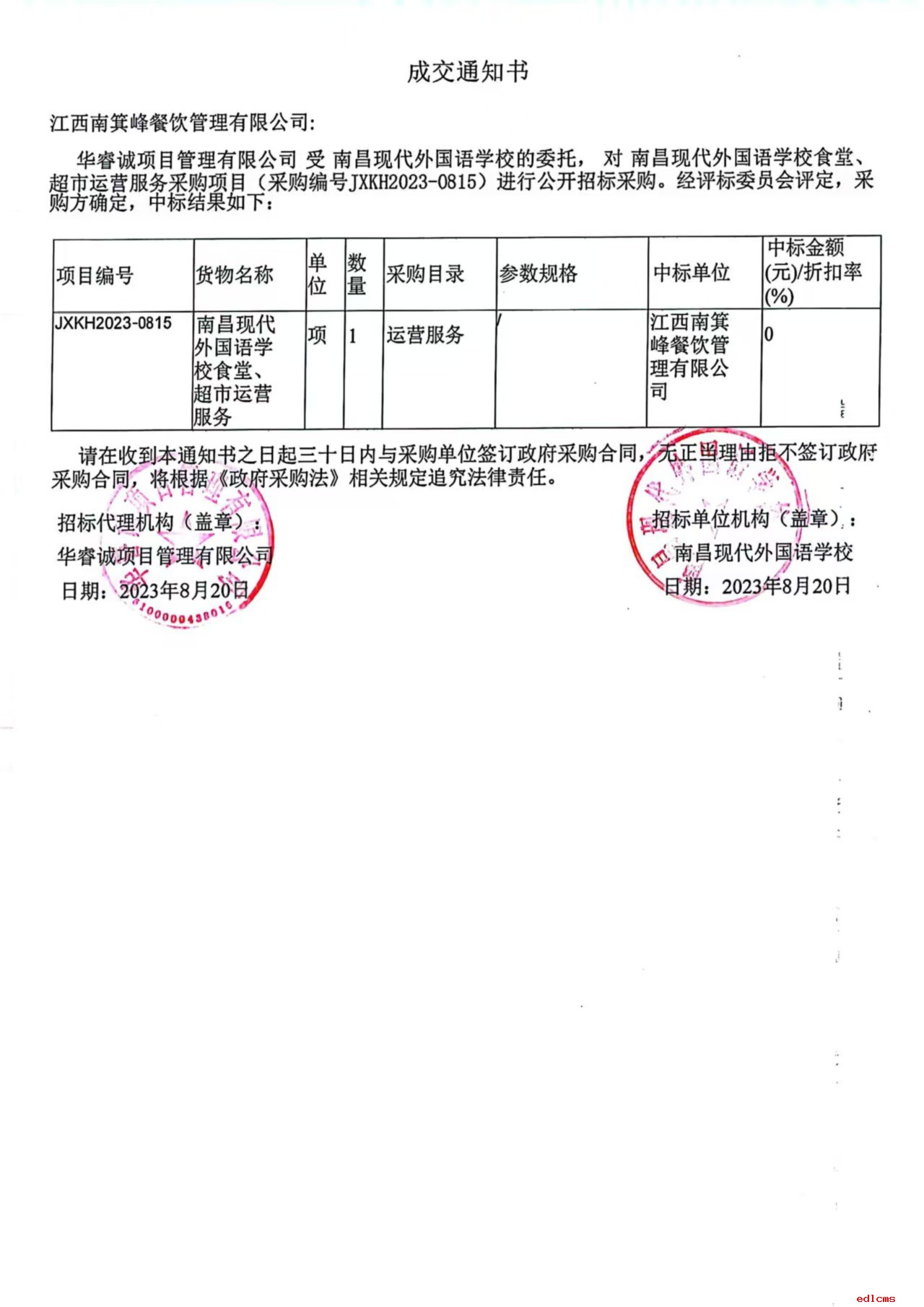 beat365中国唯一官网食堂、超市运营服务中标公示