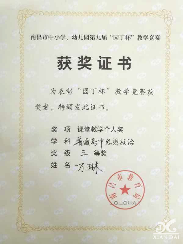 在南昌市教育学会中小学德育委员会第八届(次)学术年会上,我校涂玉萍、肖云等老师获一等奖,陈庆华等老师获二等奖。 向以上获奖的老师表示祝贺!并希望在下一届的年会论文中,再接再厉,取的佳绩! 迎宾校区