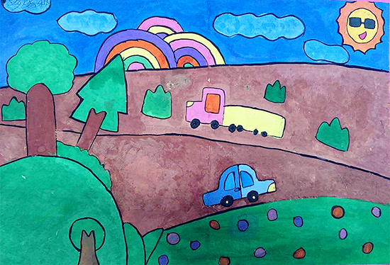 比赛现场气氛热烈,孩子们热情高涨。孩子们经过认真的构思后,纷纷拿起画笔,仔细的描绘与涂彩。一个多小时后,一幅幅充满童趣、充满活力的画诞生了。孩子们的绘画作品内容丰富,形式多样。有描绘学校的,有表现体育活动的,还有反映户外郊游的……作品构思巧妙、色彩鲜艳。