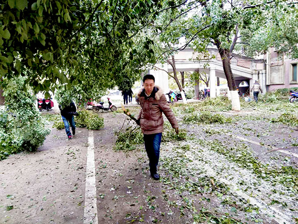 今年的冬天,南昌遇上十年不遇的极寒天气,寒风刺骨、道路结冰、树挂冰凌,大批树木枝丫折断,掉在路面,给师生出行带来了诸多不便。29日一早,为了不影响学校的教育教学,教职员工在杨校长的统一部署下,大家拿起铁锹、扫帚迅速展开清雪、除枝的劳动。