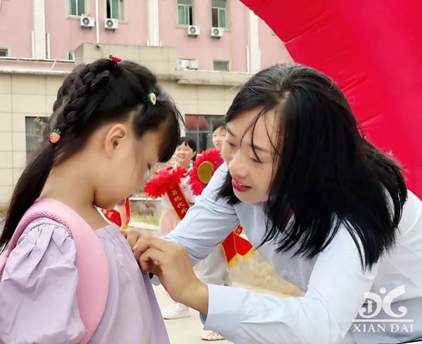 你好,新学期!亲切的刘校长亲手为小萌新们戴上纪念章,上面“阳光 自信 和睦 慎独”八个大字,再次提醒同学们新的学期要设立新的目标,勇敢无畏,勇往直前。